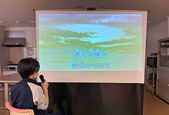 音楽療法士が担当し、楽器演奏や集団歌唱を行います。